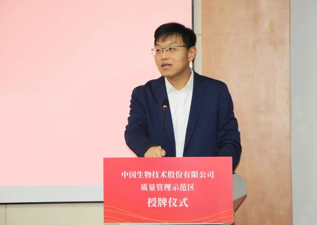中国生物质量管理部主任潘海龙对天坛生物“中国生物质量管理示范区”单位提出要求。