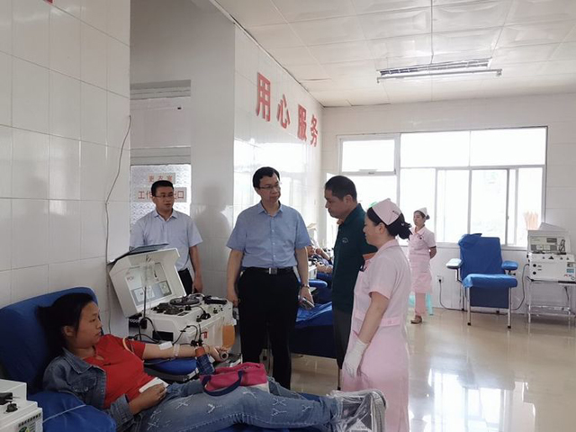 2019年6月13日上午,国药集团总会计师杨珊华来到开阳浆站调研指导工作,杨总在开阳浆站的陪同下参观了浆站的外环境打造,随后根据浆站献浆流程对各业务科室、部门进行现场调研。