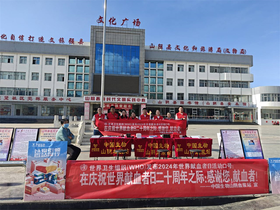 中国生物山阴血浆站,隶属于国务院国资委直接管理的中央企业--中国医药集团有限公司,前身为朔州市山阴单采血浆站,于2006年转制后由成都蓉生药业有限责任公司设置,2008年9月获得《单采血浆许可证》执业采浆。浆站位于山西省朔州市山阴县北周庄镇新岱岳村西,采浆区域为朔城区、平鲁区、山阴县、应县、怀仁市、右玉县,于2020年1月获得中国生物技术股份有限公司“先进集体”荣誉。