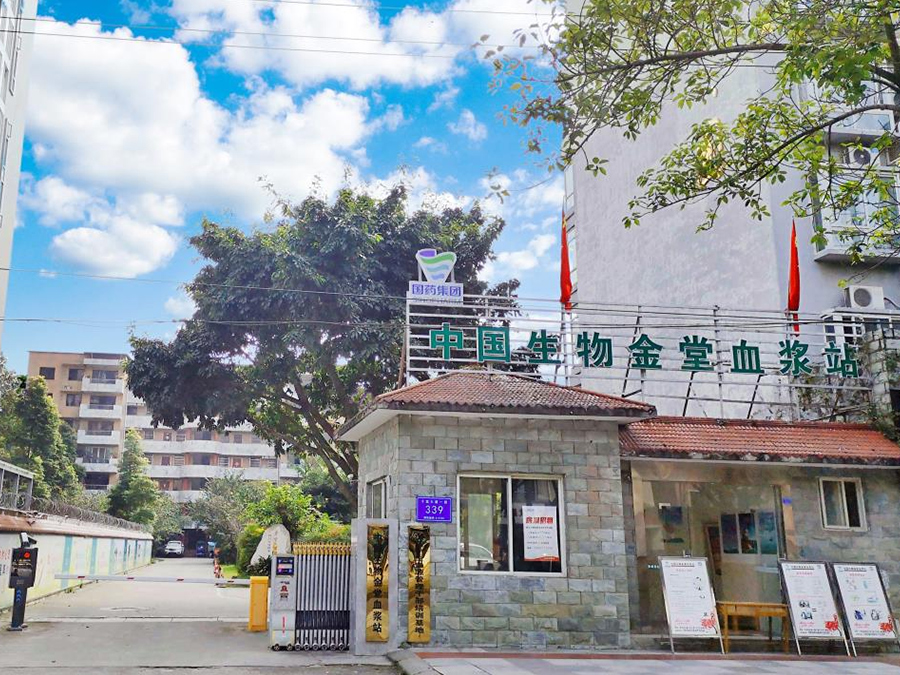 中国生物金堂血浆站,隶属于国务院国资委直接管理的中央企业--中国医药集团有限公司,前身为金堂县红十字会输血站,于2007年转制,由成都蓉生药业有限责任公司设置,2007年5月获得《单采血浆许可证》执业采浆。浆站位于金堂县十里大道一段339号,采浆区域为金堂县,于1997年被确定为全国样本浆站,时任卫生部部长陈敏章亲笔题词。