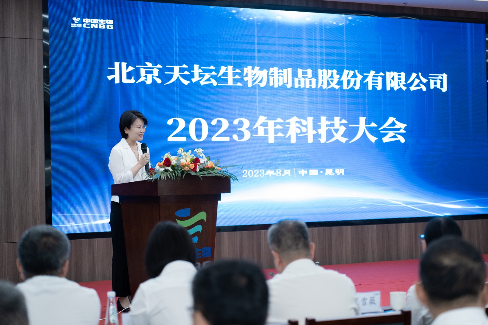 8月10日,天坛生物2023年科技大会在昆明血制召开。国药集团首席科学家、中国生物副总裁张云涛,天坛生物党委书记刘亚娜,副总经理何彦林,财务总监张翼,纪委书记高嵩,董事会秘书慈翔,首席科学家余鼎出席大会。天坛生物总经理付道兴主持会议。中国生物董事会办公室、科研管理部、注册管理部和临床医学中心等部门负责人及科研、注册管理人员,天坛生物相关部门负责人,血制公司主要领导,研发中心内设部门负责人、课题负责人及研发主管等80余人参会。