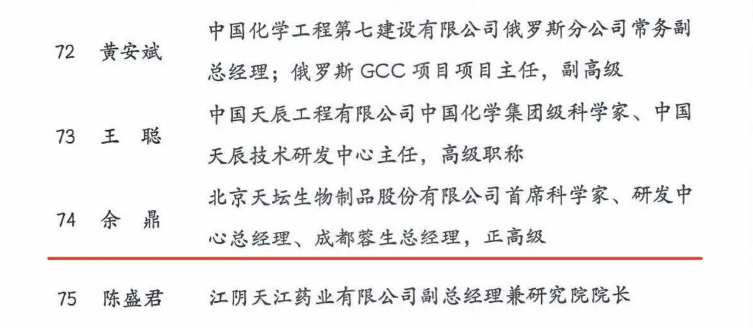 10月30日,中国能源化学地质工会发布“身边的大国工匠”推荐学习宣传活动(第九季)100名推荐学习宣传对象名单。国药集团中国生物血液制品首席科学家、天坛生物原首席科学家、天坛生物研发中心总经理、成都蓉生总经理余鼎研究员成功入选全国能源化学地质系统“身边的大国工匠”推荐学习宣传对象。
