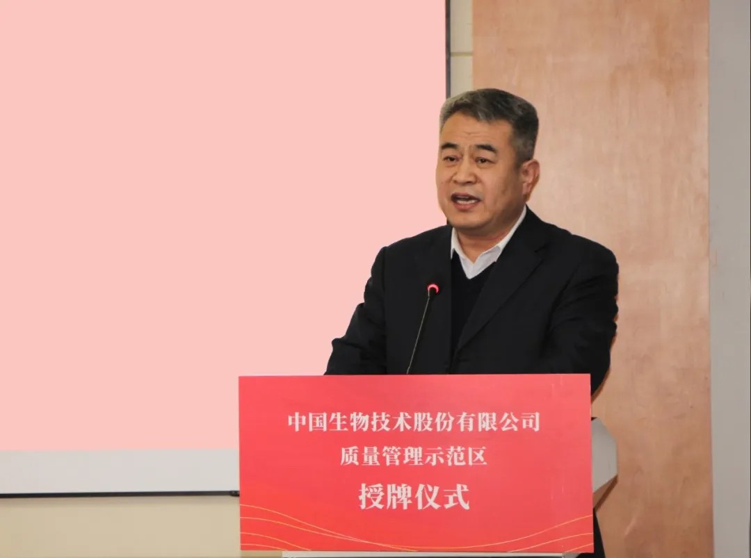 中国生物质量管理部主任潘海龙对天坛生物“中国生物质量管理示范区”单位提出要求。