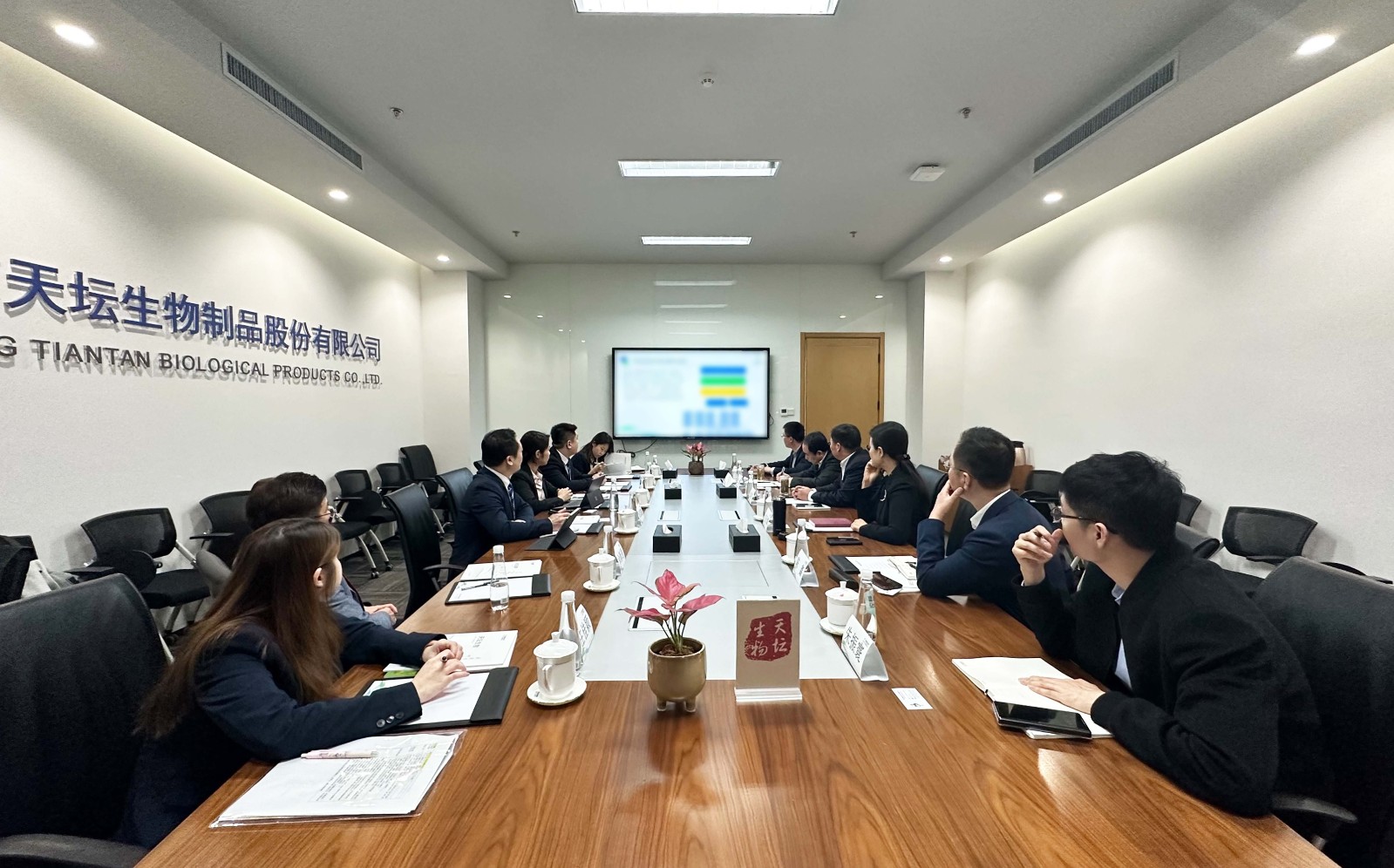 3月6日,中诺生物技术有限公司(以下简称中诺生物)首席执行官师郡徽带领团队访问天坛生物,探讨业务合作。天坛生物总经理付道兴,党委书记