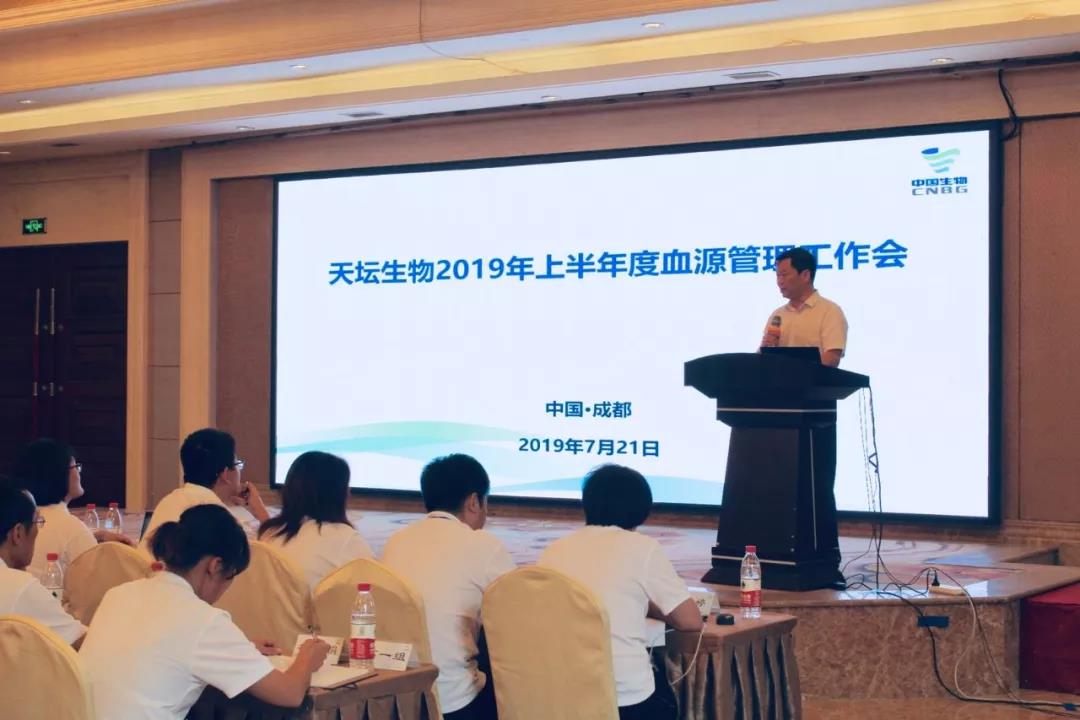 7月21日,天坛生物2019年上半年血源管理工作会议在成都召开。总经理、党委书记付道兴,副总经理何彦林、杜晓,兰州血制副总经理(主持工