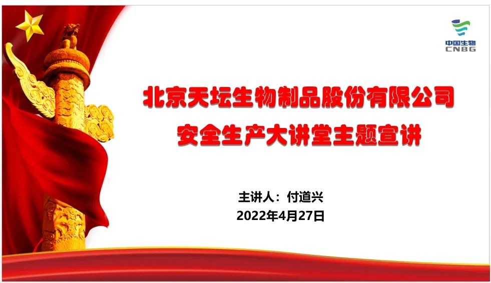 为深入学习贯彻习近平总书记关于安全生产工作的重要论述,全面落实国资委、国药集团和中国生物工作部署要求,推动天坛生物各级企业牢固树立