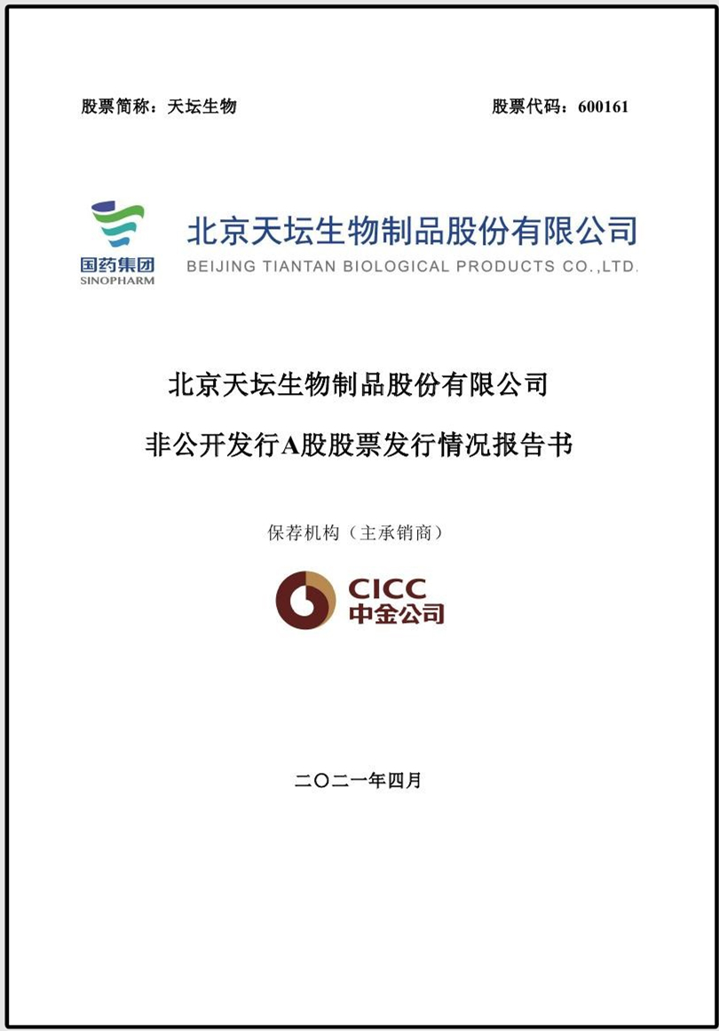 天坛生物非公开发行相关增资工作实施完成
