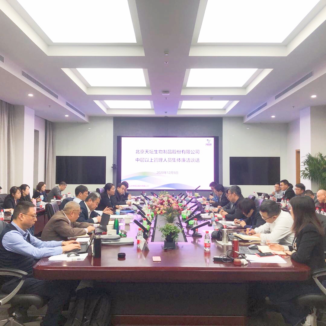 为深入推进党风廉政建设,营造清风正气的良好氛围,12月5日,天坛生物召开中层以上管理人员集体廉洁谈话。天坛生物党委班子成员及