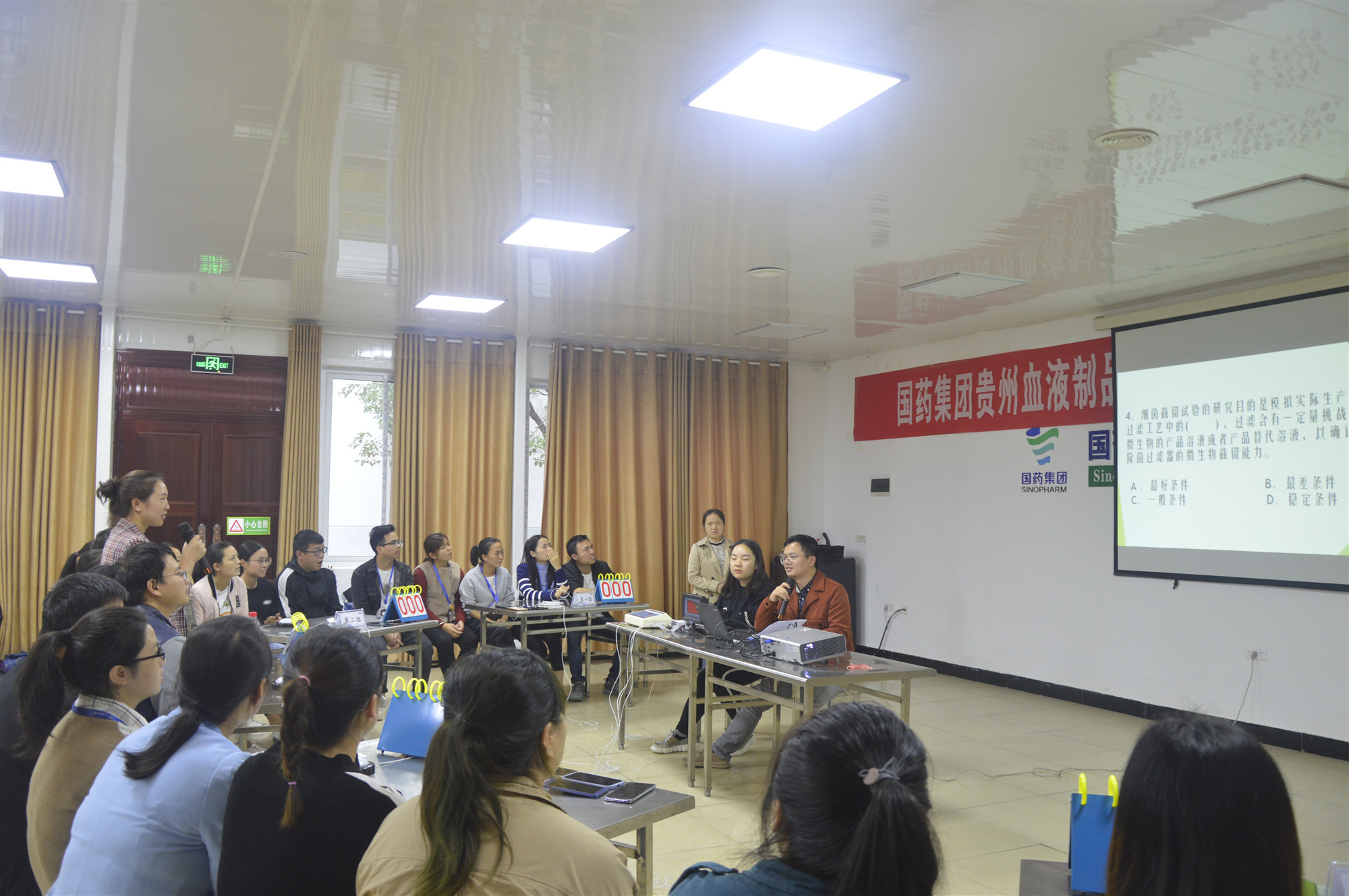 9月25日,贵州血制组织开展质量知识竞赛,此次竞赛是贵州血制9月开展的质量月活动的重要内容。生产质量部门一线员工通过抽签随机组成