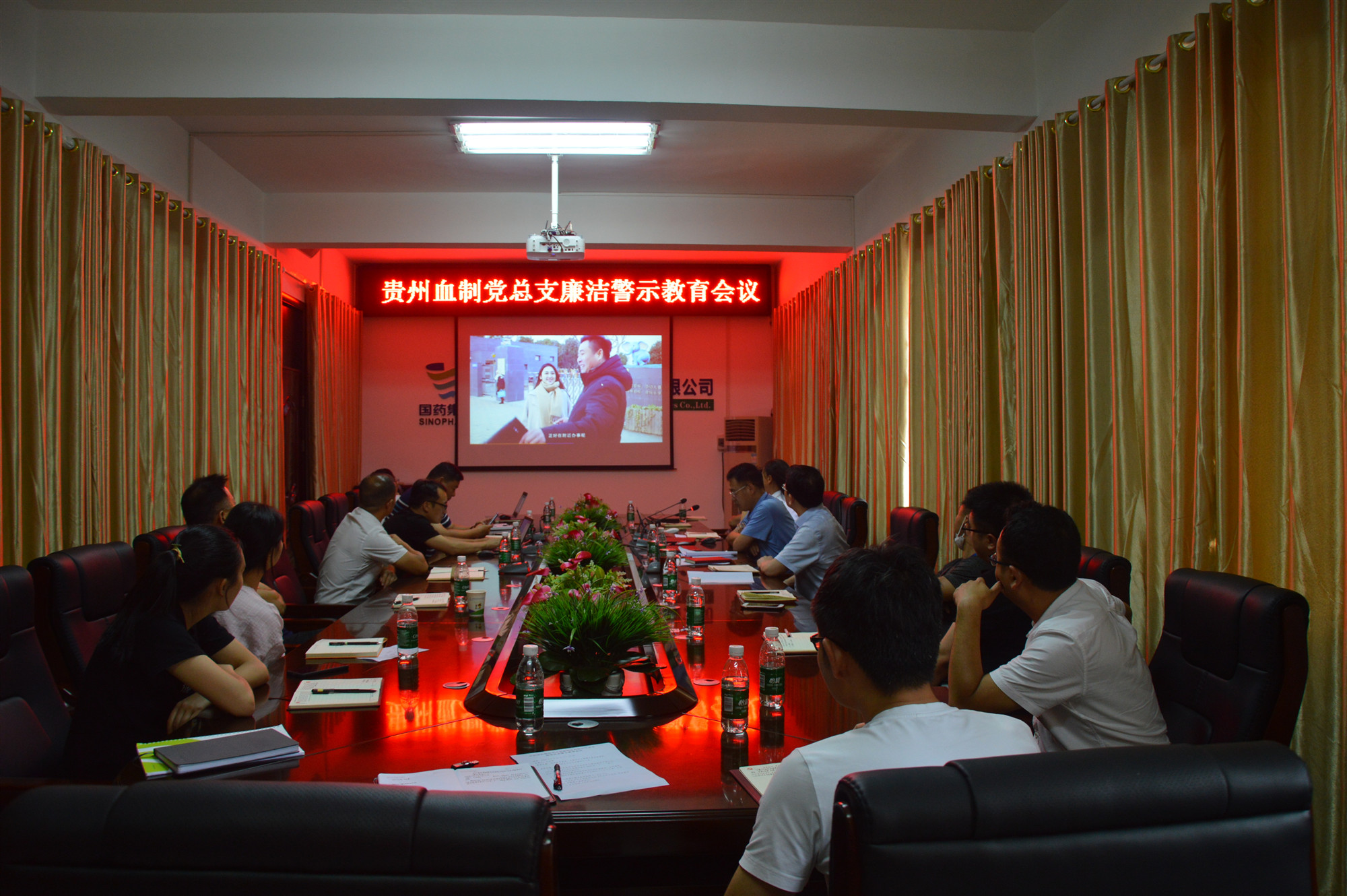 6月23日,贵州血制党总支召开廉洁警示教育暨集体廉洁谈话,贵州血制公司及下属浆站领导班子、党员及积极分子、助理以上管理人员、关键岗