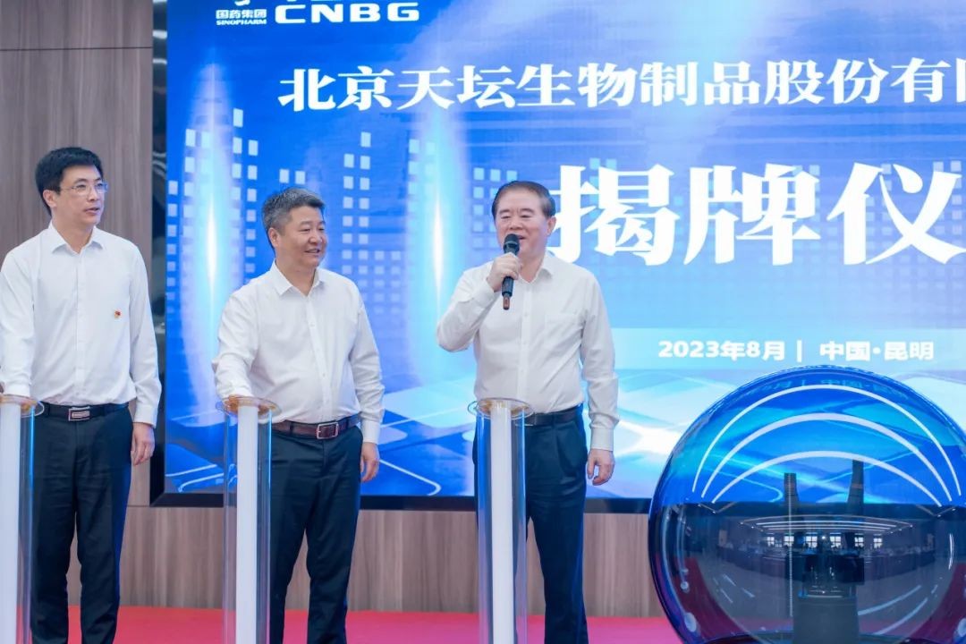8月3日,天坛生物培训中心揭牌仪式在昆明血制举行。中国生物党委书记、副总裁朱京津,巡察工作办公室主任李文博,天坛生物党委书记、副总经理刘亚娜,常务副总经理、党委副书记周东波,纪委书记高嵩,首席科学家余鼎共同为培训中心揭牌。天坛生物人力资源部主任荆琪主持仪式。