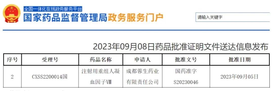 国家鼓励开发的罕见病用药、突破原料血浆来源限制的重磅产品、让血友病A患者有更多的用药选择……诸多亮点让人对“注射用重组凝血因子Ⅷ”充满期待。9月8日,根据国家药品监督管理局(NMPA)网站发布的最新公告,国药集团中国生物血液制品板块企业天坛生物所属成都蓉生药业有限责任公司(简称“成都蓉生”)研发生产的“注射用重组凝血因子Ⅷ”获批,标志着该产品即将正式上市。