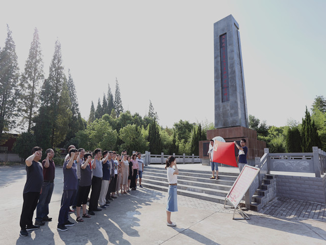 在瞿家湾烈士陵园,大家首先瞻仰了革命烈士纪念碑,向革命烈士纪念碑敬献花圈,表达了对革命先辈的缅怀和崇敬之情;随后在纪念碑前,面对鲜红的党旗,大家举起右拳再次在党旗下宣誓,愿为共产主义奋斗终身,随时准备为党和人民牺牲一切。每位党员都深受教育,被革命先烈的英雄气魄和英勇的斗争精神所感动和鼓舞。
