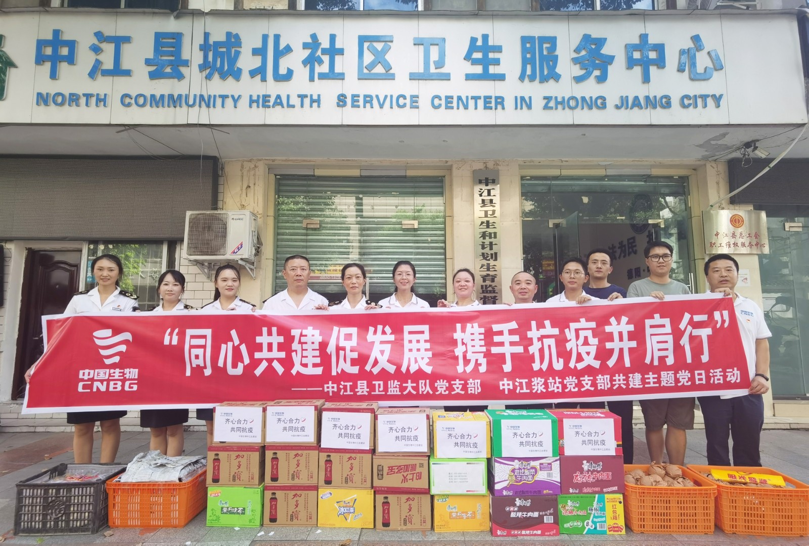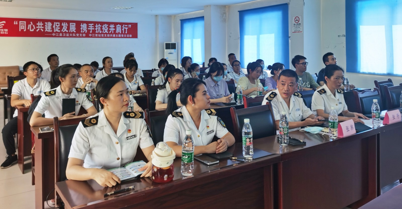 近日,中江浆站党支部与中江县卫监大队党支部联合开展“同心共建促发展 携手抗疫并肩行”主题党日活动。双方党员、入党积极分子、浆站班子成员及员工代表30余人参加活动。