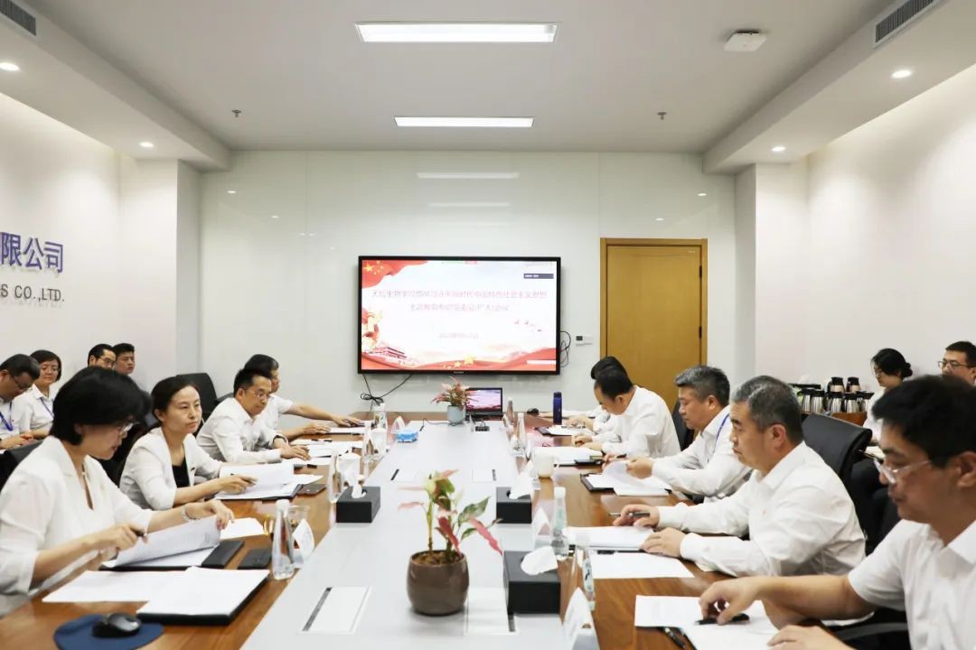 9月22日,天坛生物召开学习贯彻习近平新时代中国特色社会主义思想主题教育专题党委(扩大)会,专题研究部署主题教育相关工作,国药集团主题教育领导小组办公室综合组成员、党委工作部副主任周玉霞,中国生物党委副书记陈键出席会议,会议由天坛生物党委书记、副总经理刘亚娜主持。