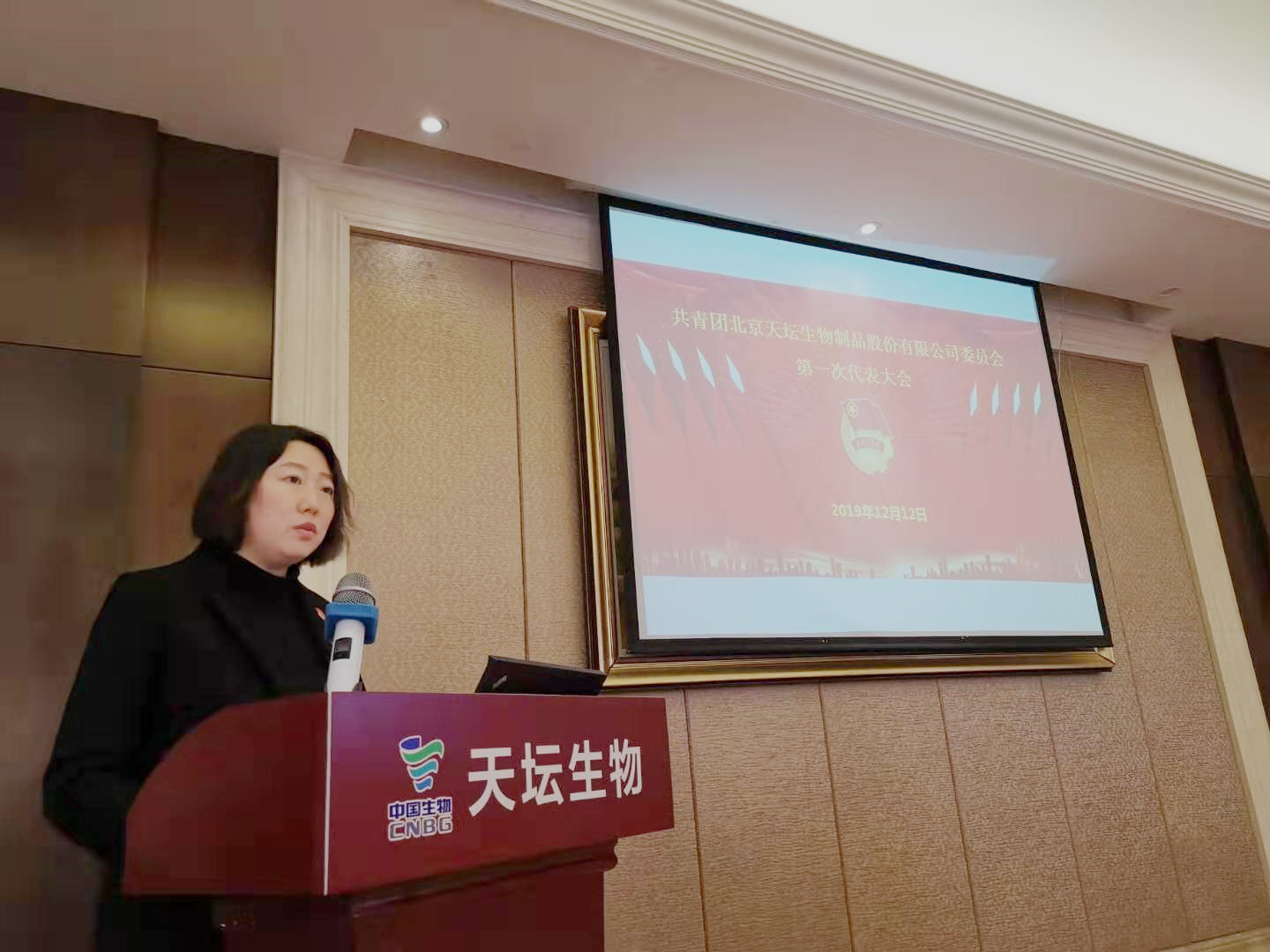 中国生物团委书记高艳代表中国生物团委对大会顺利召开表示热烈祝贺,对天坛生物各级团组织围绕中心、服务大局,为天坛生物改革发展贡献青春力量给予充分肯定,同时对天坛生物第一届团委提出三点希望:一是坚持党的领导,继续发扬“党有号召、团有行动”的光荣传统。二是积极投身企业改革发展,在“服务大局”中发挥好作用。三是不断加强团的自身建设,真心实意服务青年。