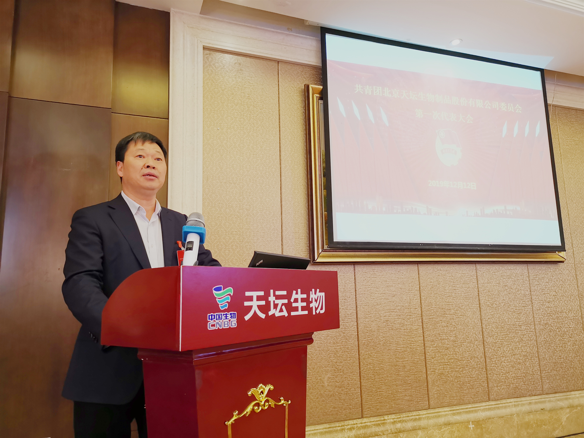 天坛生物党委书记、总经理付道兴代表公司党委向长期以来关心和支持天坛生物共青团工作的中国生物各级领导表示诚挚的感谢!向全体与会代表和广大团员青年致以亲切的问候!同时,对共青团和青年工作提出了三点希望和要求:一是坚持以习近平新时代中国特色社会主义思想为指引,不断增强使命责任。二是以全面从严治党引领全面从严治团,发挥好党的助手和后备军作用。三是坚持围绕中心服务大局的工作主线,不断提升业务技能。