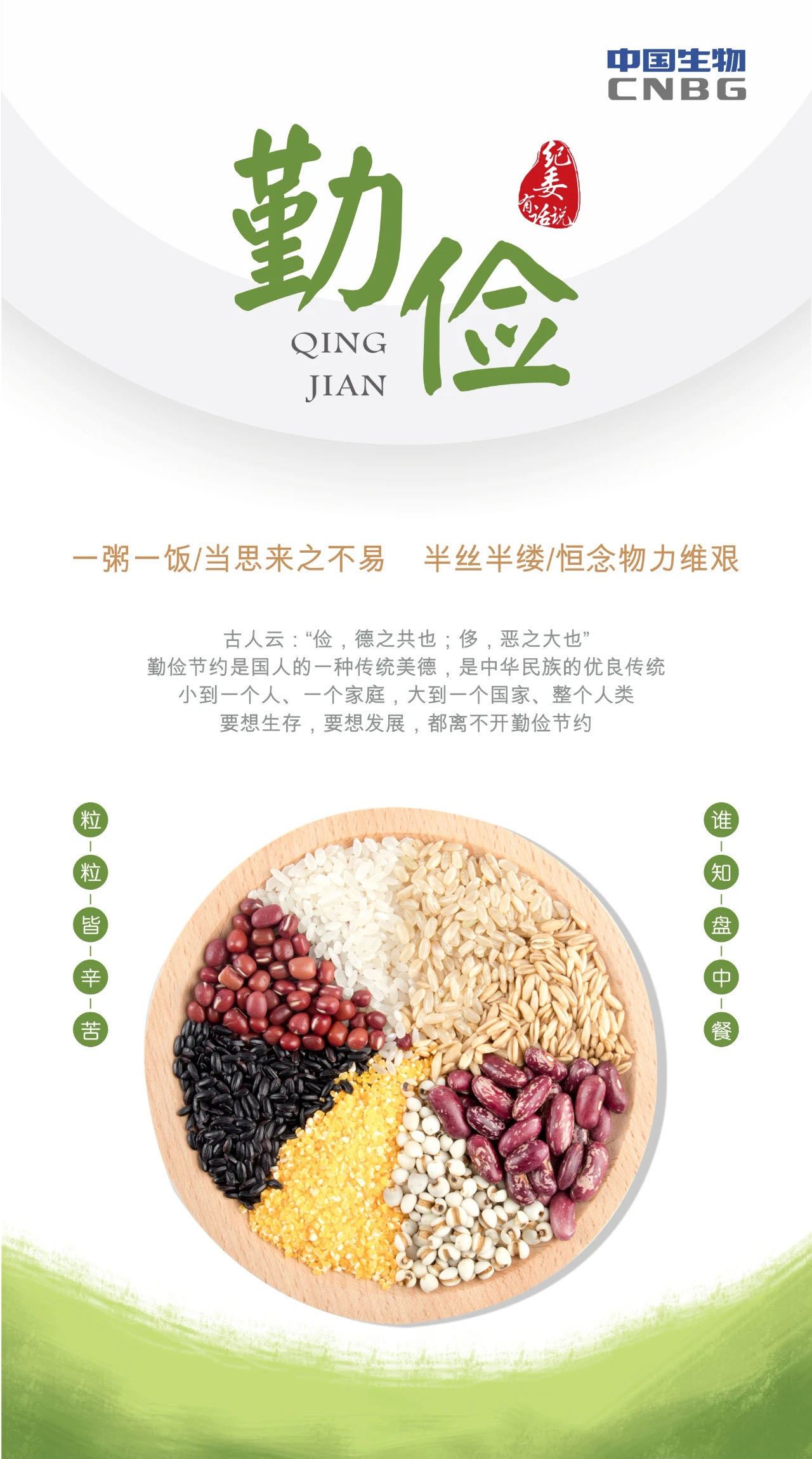 艰苦奋斗、勤俭节约是中华民族的传统美德,是我们每一个社会成员义不容辞的责任,让我们积极行动起来,从现在做起、从自己做起、从点滴做起,养成良好的节俭习惯,形成崇尚节俭的道德风尚。