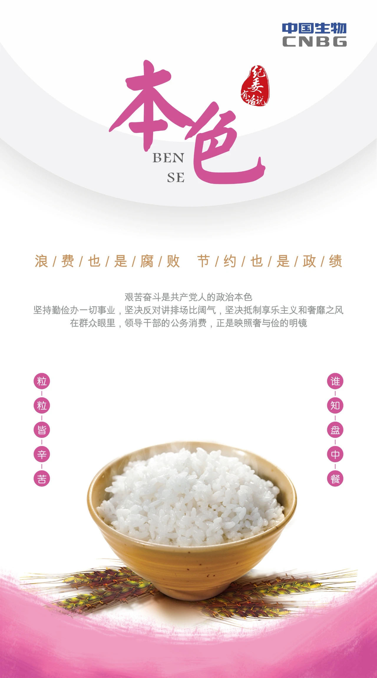 一、增强政治自觉,做“厉行节约、反对浪费”的忠诚拥护者。勤俭节约是中华民族传统美德,是践行社会主义核心价值观的生动体现,公司全体干部员工要自觉弘扬艰苦奋斗精神,落实《方案》要求,坚持从我做起、从日常做起、从点滴做起,自觉把勤俭节约、艰苦奋斗的理念内化于心、外化于行。把厉行节约、反对浪费作为增强“四个意识”、坚定“四个自信”、做到“两个维护”的具体行动,从节约每一滴血浆、每一度电、每一滴水、每一粒米、每一张纸、每一支笔等小事做起,用心做好每一瓶血液制品,保障产品质量安全,提升精细化管理水平,形成全员参与提质增效的良好氛围。