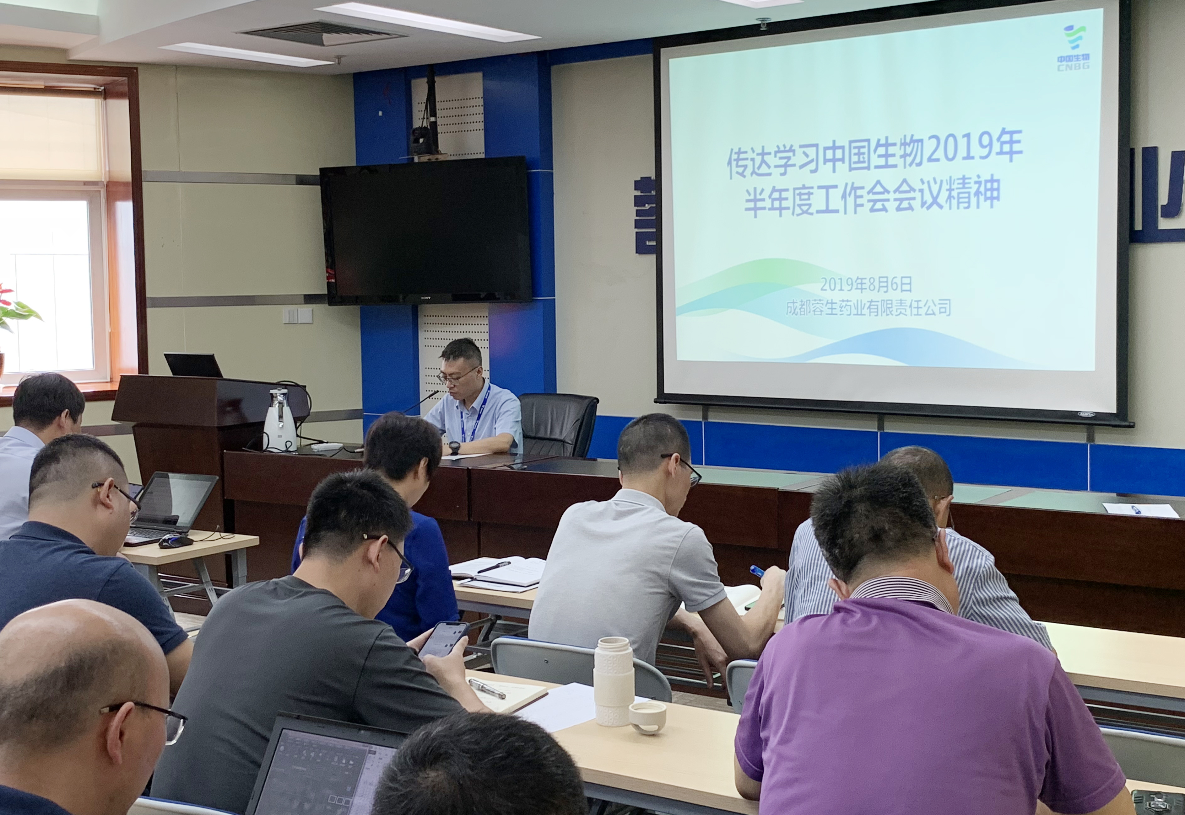 天坛生物成都办公区和成都蓉生传达中国生物2019年半年度工作会议精神