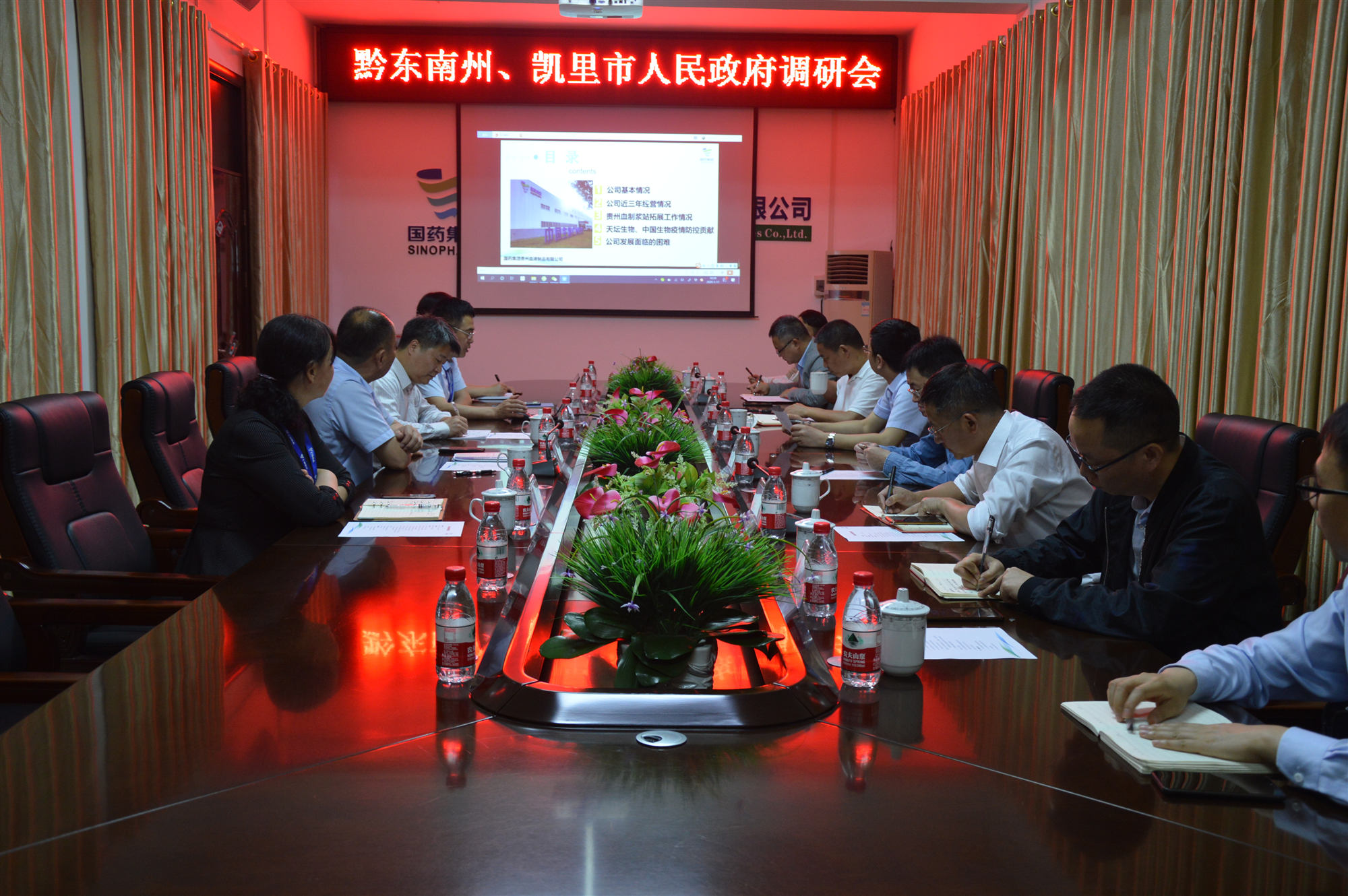 5月11日上午,黔东南州人民政府副州长秦扬远、黔东南州工业和信息化局局长李光坤、凯里市人民政府副市长龙林、凯里经济开发区管委会副主任王丹等一行到贵州血制开展调研并进行沟通座谈。