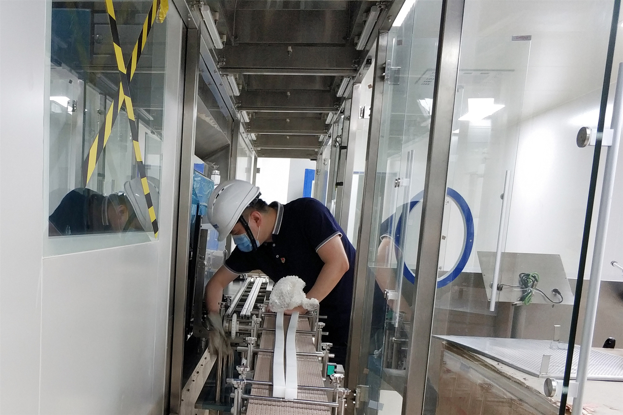 6月的成都较为闷热,党员同志们在车间里登高爬低虽是挥汗如雨,但却细致入微干得热火朝天。尽管厚厚的安全帽被额头的汗水浸湿,眼镜片被口罩闷出了雾气,衣服被汗水浸透了一遍又一遍,全身上下也是沾满灰尘,但是大家丝毫不觉得脏和累。经过两个多小时的“战斗”,一整条洁净的分装线和焕然一新的分装间靓丽地呈现在大家眼前,看到如此亮眼的劳动成果,同志们的眉梢眼角尽是笑容。