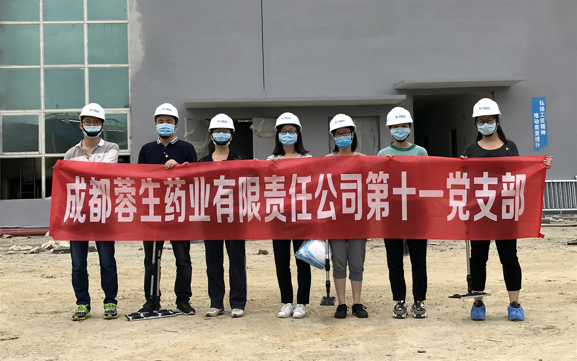由于成都蓉生当前生产任务比较繁重,生产人员和生产设备均是满负荷运转,与此同时永安新厂区的洁净厂房已进入最后的收尾阶段,亟待清洁后接续开展设施设备的安装调试工作。为减轻生产部门同事们的工作压力,成都蓉生第十一党支部的党员同志们主动请缨,对永安新厂区的生产车间进行了大扫除。