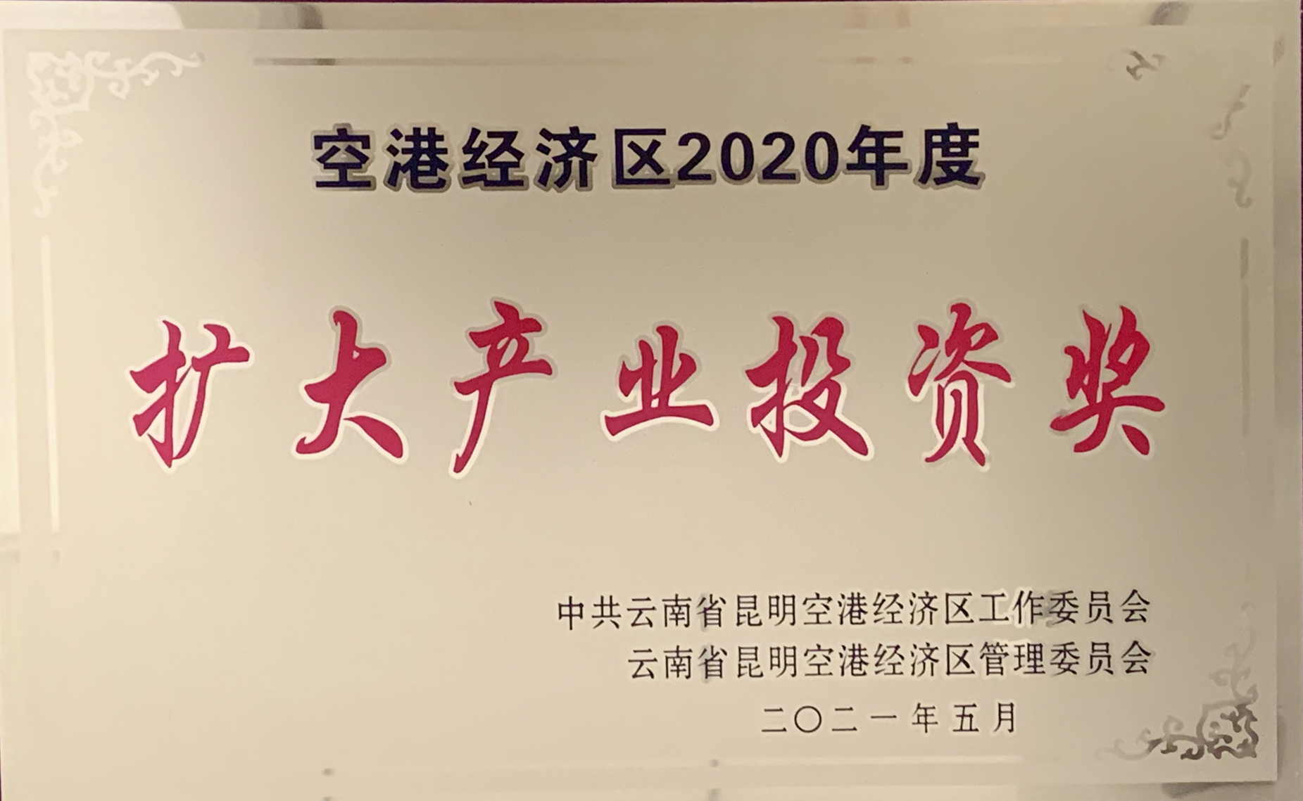 5月21日,云南昆明空港经济区党工委、空港经济区管委会在昆明召开2021年度经济工作会,对2020年在空港经济区促进产业发展中做出突出贡献的企业进行表彰,上海血制荣获“扩大产业投资奖”。