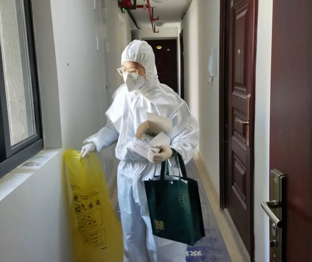 团委书记蒋馨悦加入社区志愿者以来,牺牲清明假期,积极配合居委会工作人员开展工作,维护核酸检测队伍秩序、挨家挨户配送生活物资、发放防疫礼包、为有配药需求的居民登记发药、上门为居民做抗原检测筛查。4月8日当晚,接到居委会电话后立即前往集合地点领取抗原检测材料,直至凌晨3点才完成目标楼栋任务,在抗疫一线展示了团员青年良好风貌。