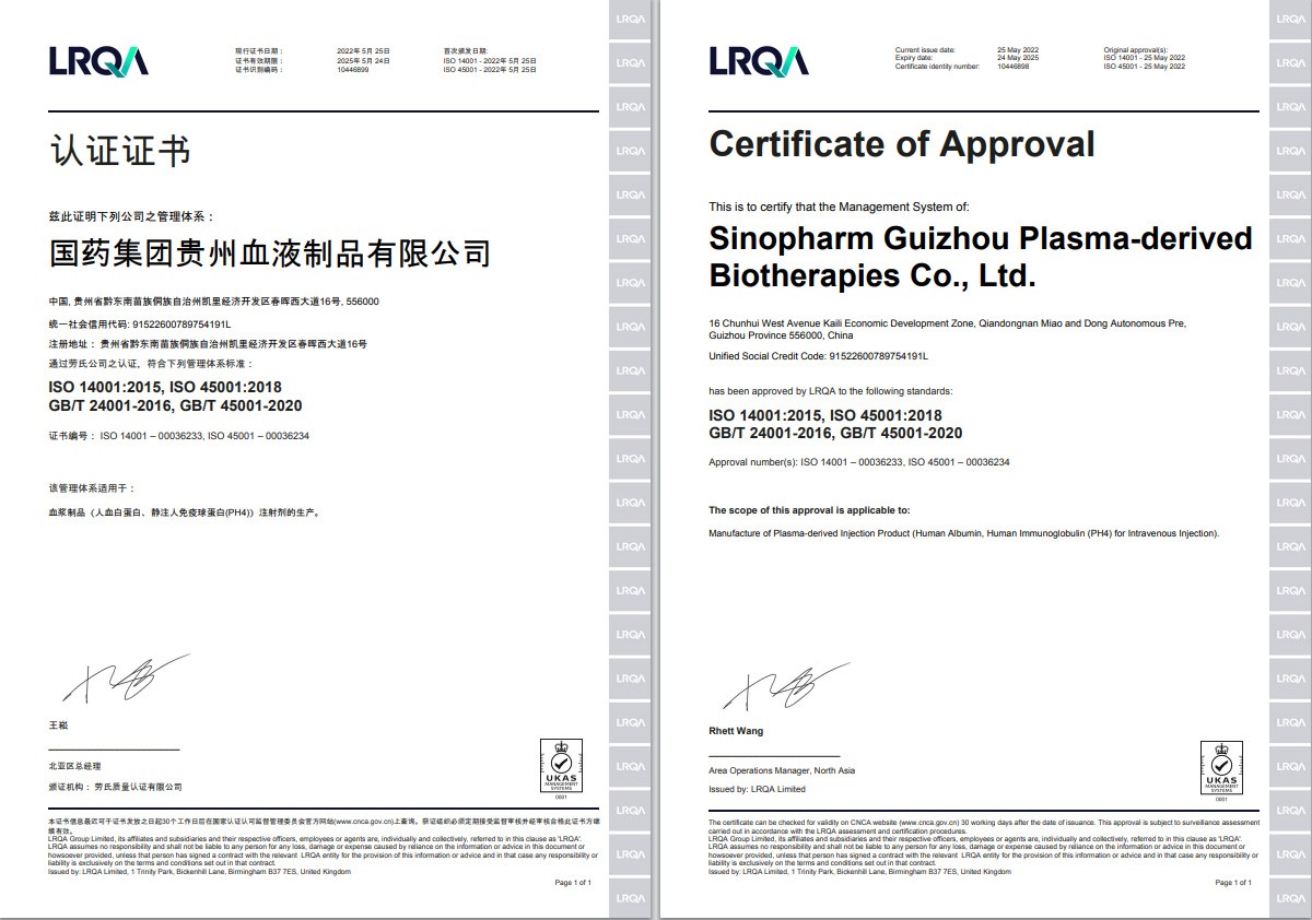 EHS管理体系认证的通过,是对贵州血制环境管理体系和职业健康安全管理体系建设的规范化、标准化的肯定与认可,贵州血制将继续秉承“全员参与、清洁生产、预防污染、节能减排、持续改进”的环境方针及“以人为本、全员参与、安全发展、严控感染、持续改进”的职业健康安全方针,认真贯彻执行EHS管理标准,不断优化和持续改进EHS管理体系,全面提升管理水平,为公司的快速发展保驾护航。